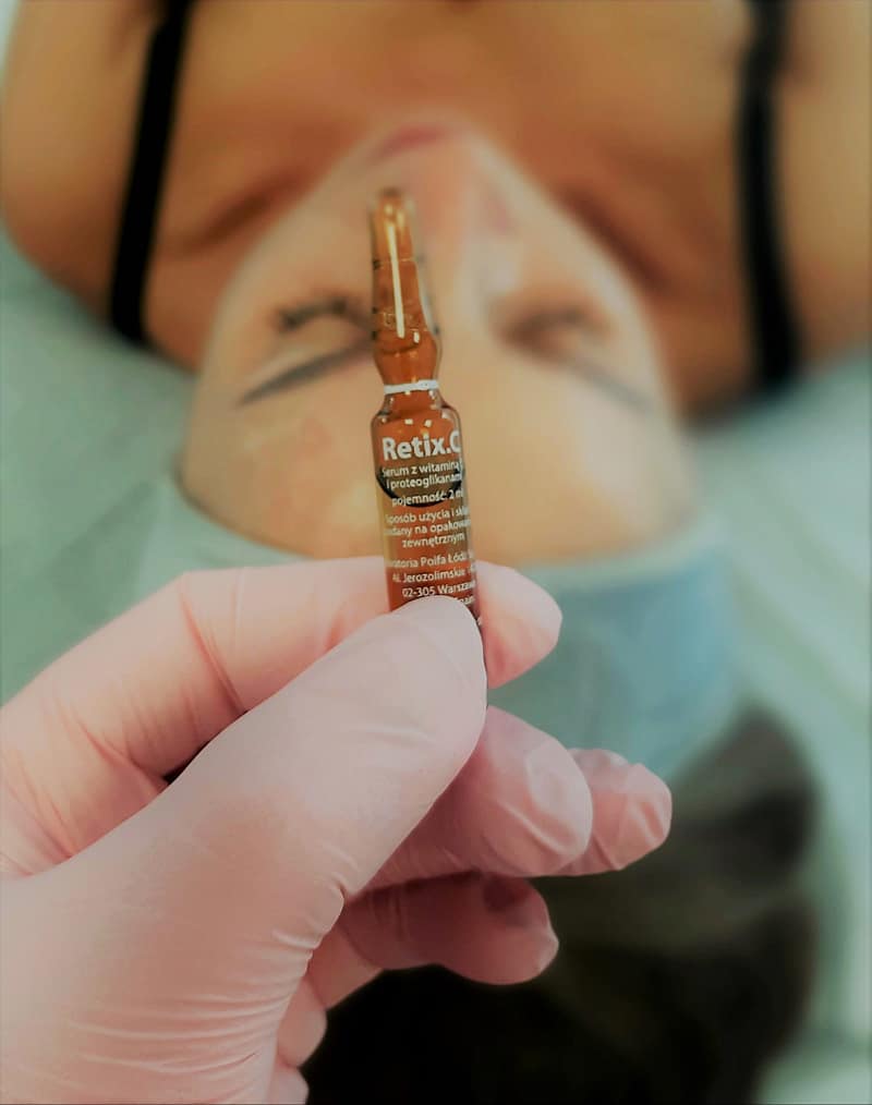 Retix C wykorzystuje działanie wysoko stężonych antyoksydantów, retinolu i witaminy C. Efekt jaki uzyskuje się już po pierwszym zabiegu to rozjaśnienie zmiana kolorytu skóry, poprawa mikrokrążenia, spłycenie drobnych zmarszczek, redukcja stanów zapalnych widocznych na skórze, redukcja łojotoku.